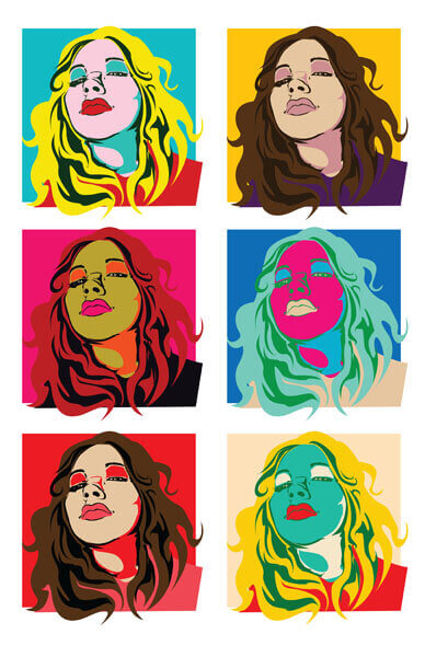 These two posters were commissioned for a client who wanted a portrait and was fond of Marilyn Monroe. The color combinations were based on the combinations used in the famous Warhol prints.