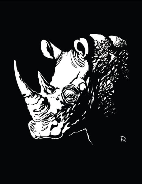 The idea was to manipulate positive and negative areas to form the shape and texture of the rhino without using any line work.